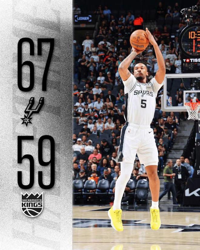 文班缺席马刺7人上双送国王6连败 威少14+9+7总分超绿军两名宿